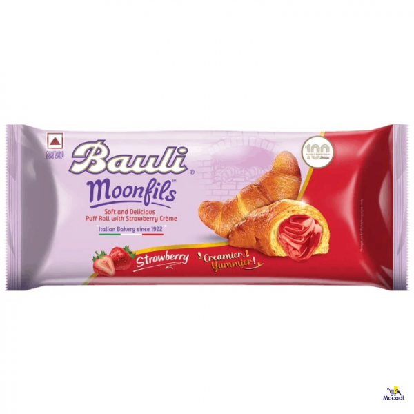 Bauli Moonfils - Strawberry Flavoured, Centre Filled Puff Rolls, Italian Recipe, Soft & Delicious, 50 g