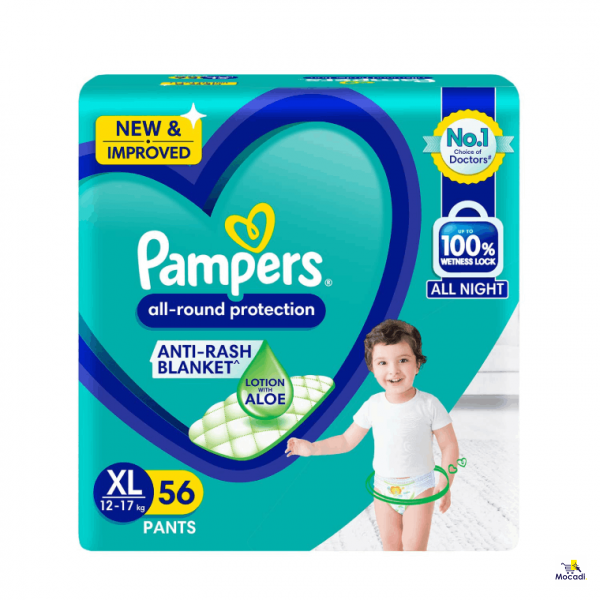 New & Improved Pampers All-round Protection Pants – Nice Quality diaper pants for complete protection of your baby from the World's #1 diaper brand (Based on Euromonitor International, Tissue and Hygiene, 2021ed, Pampers in #1 Nappy/Diapers/Pants sales brand globally in terms of both retail value sales (RSP) and volume, all retail channels, 2020 data or Source: Euromonitor International, global diaper sales, 2020 data).