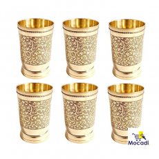 Pure Brass Mughlai Style Embossed Design Glass Tumbler