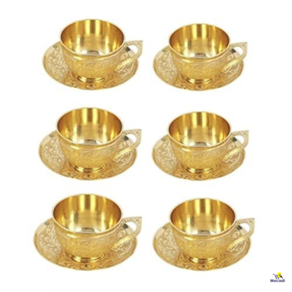 TIBETAN HANDICRAFTS Beautiful Flower Design Brass Tea Cup with Saucer