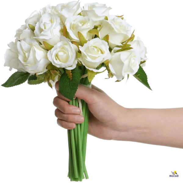 This beautiful Flower bunch with lush green leaves and stems are natural-looking artificial flowers with a smooth finish to run your hand bouquet bunch is pleasing to keep in front of your eyes.