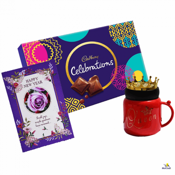 Sales Package: 1 New Year Greeting Card, 1 Ceramic Coffee Mug with Crown Lid and 1 Chocolate Celebration (Pack of 178 gm).