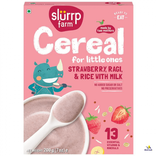 Slurrp Farm Cereal - Ragi, Rice & Strawberry With Milk
