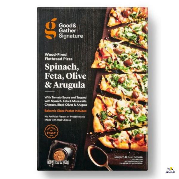 Wood-Fired Spinach Feta Olive and Arugula - Frozen Flatbread Pizza